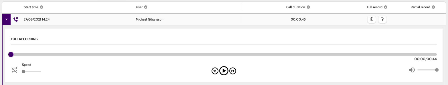 Click on a call to listen to the call recording.