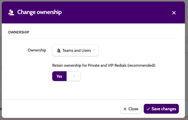 Under Change ownership, change the lead owner to a team or an individual user