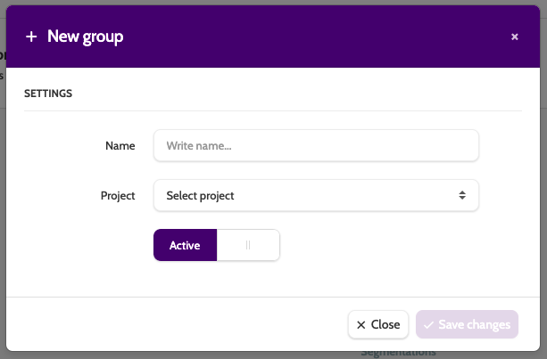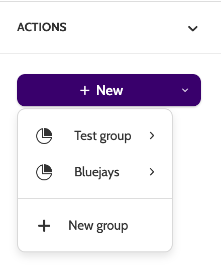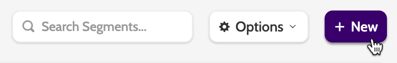 To create a segment group, click + New, or expand the + New drop-down menu to the right of the navigation page and select + New Group.