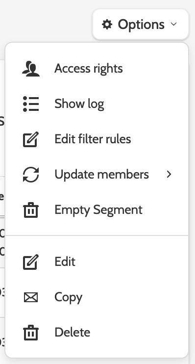 To edit an existing segment, select it from the segment group and click Options to open the menu.