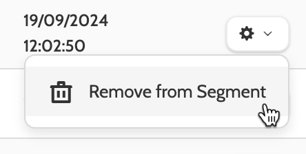 To remove a lead from a segment, click the cog to the right of the lead, and click Remove from Segment.
