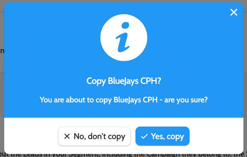 Please note that the copied segment will have the same settings as the original, so make sure to adjust the Filter Rules of the copied segment, as leads can only belong to one segment!