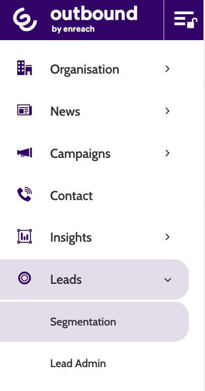 To access segmentation, expand the Leads drop-down menu and select Segmentation.