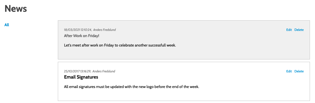 If you need to edit or delete a news post, this can be done from the news home page.