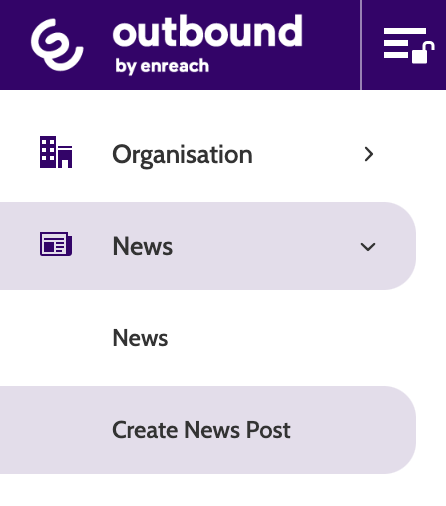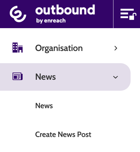 After logging into Outbound you will see your organisation's news.