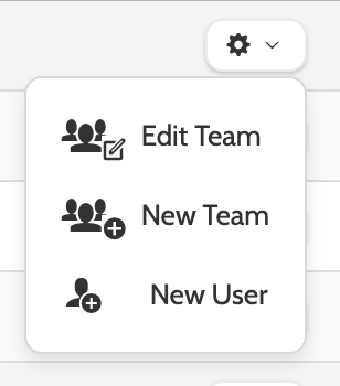 Alternatively, click the cog icon to the right of your company. Here you can Edit Team, add a New Team, or add a New User within the team.