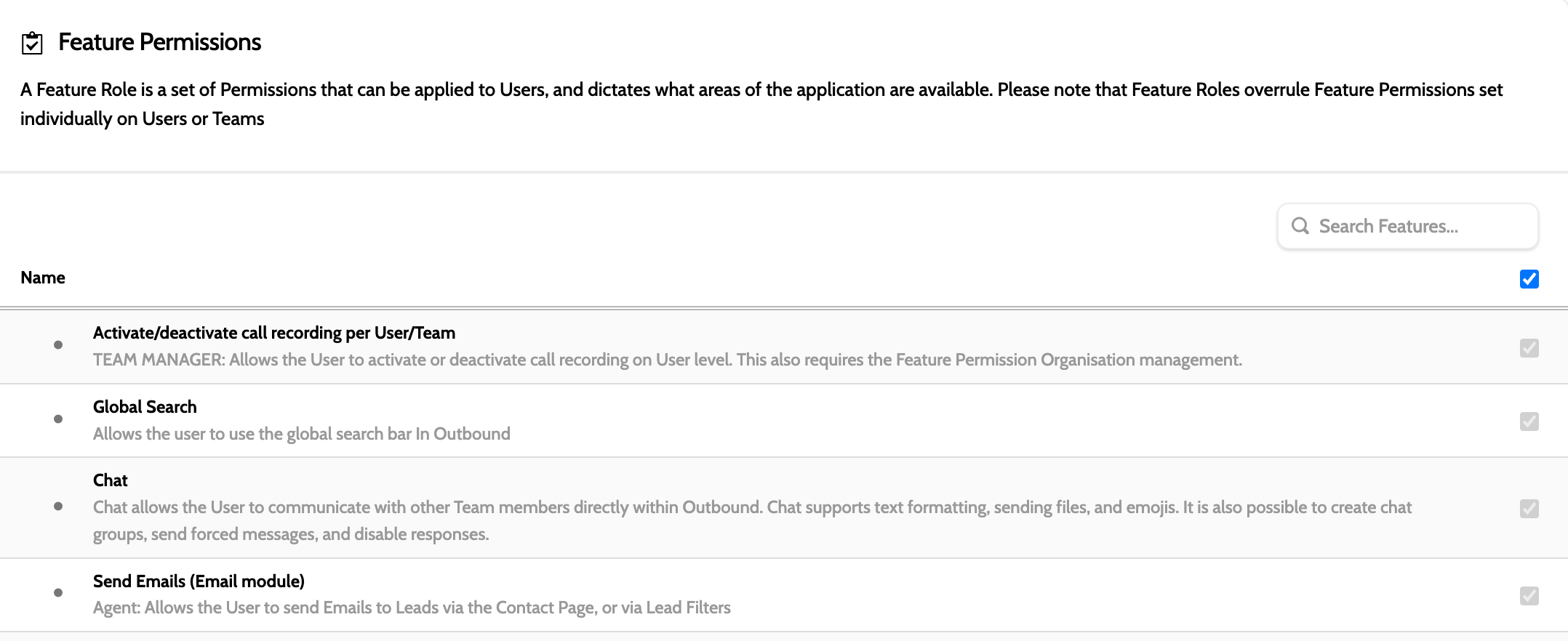 Feature Permissions allows you to grant teams and users access to certain features in Outbound.