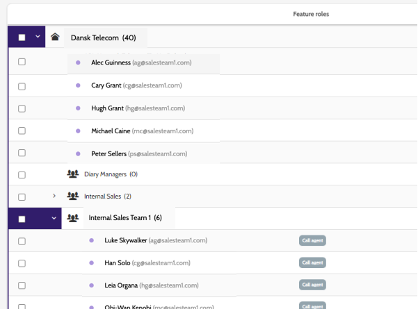 Feature roles allows to you search and filter your organisational view by various feature roles.