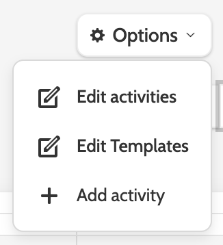 Expand the Options menu to Edit activities, or Edit Templates, or add an activity.