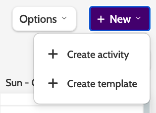 Expand the +New menu to Create activity, or Create template.