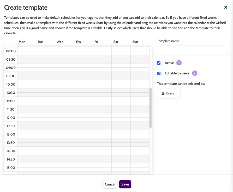 - Organisation/Users: toggle between organisation and users to select who can use this template.