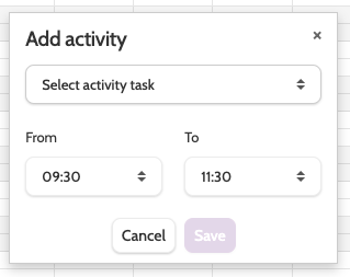 To add an activity to the template, select the period of time and enter the details in the pop-up box.