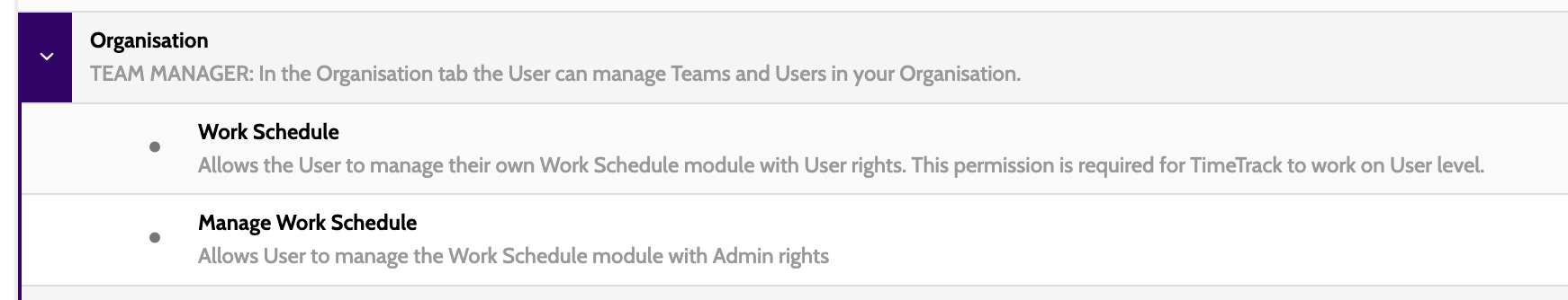 Organisation: Manage Work Schedule