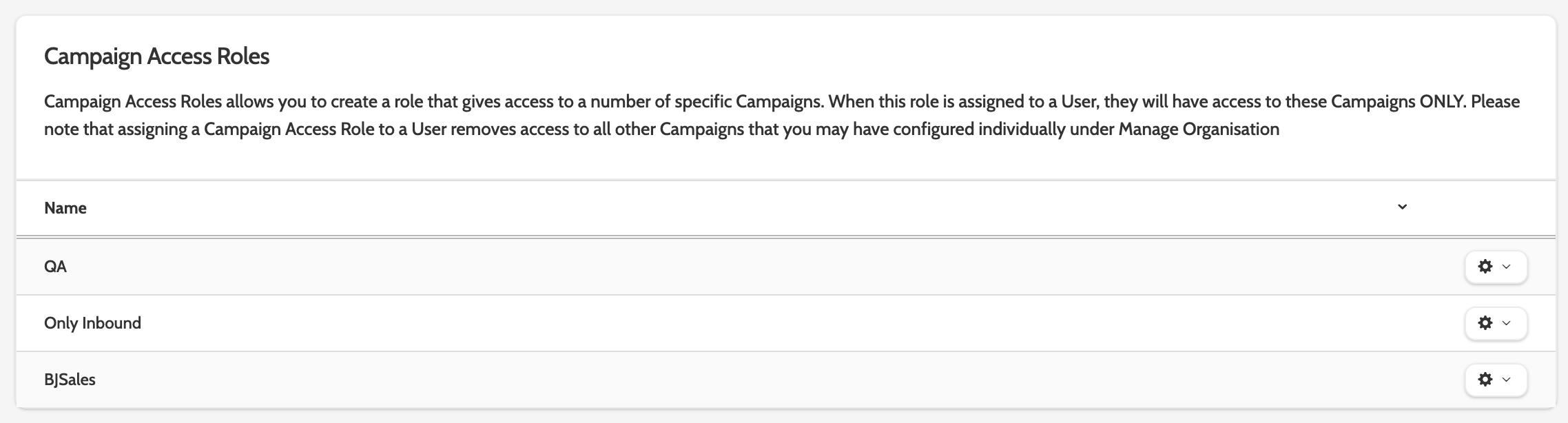With campaign access roles, you can assign access to certain campaigns to specific agents.