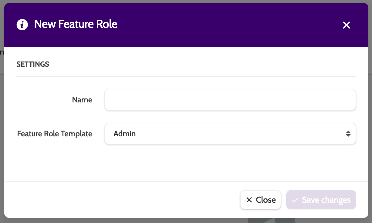 To create a new feature role, enter a Name and select a Feature Role Template from the drop-down menu.