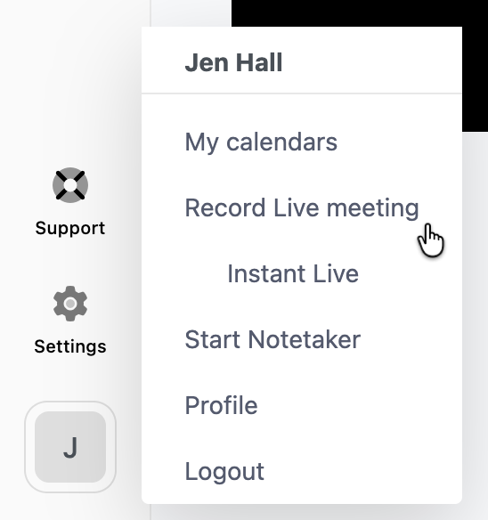 - Click your avatar in the bottom-left corner and select Record Live meeting from the menu