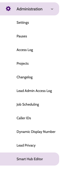 To begin building your extensions, expand the Administration menu, and select SmartHub Editor.